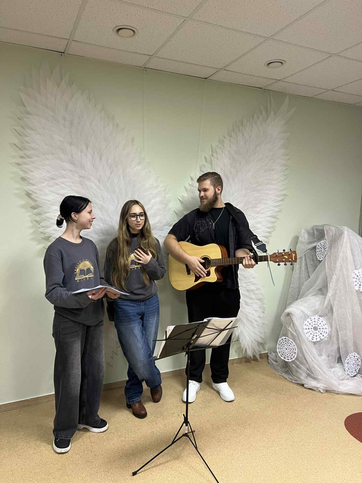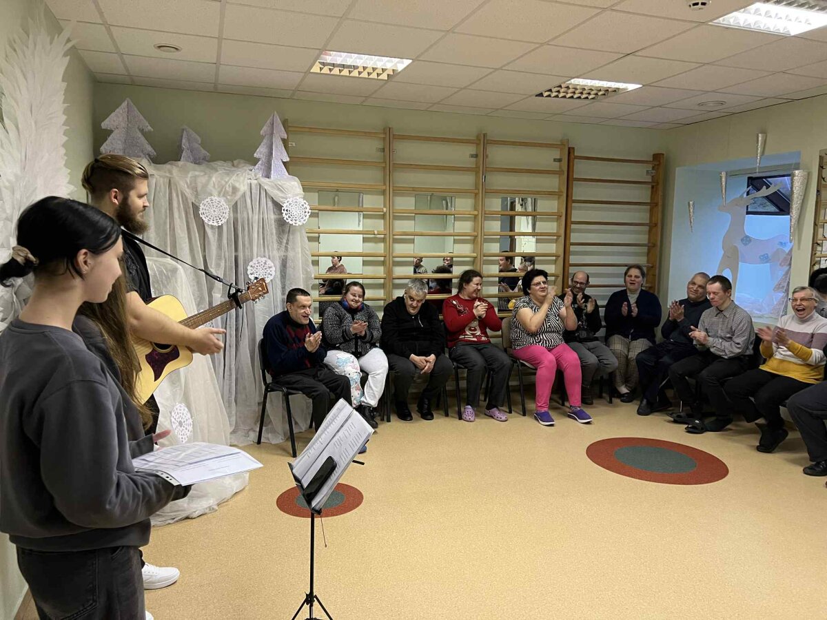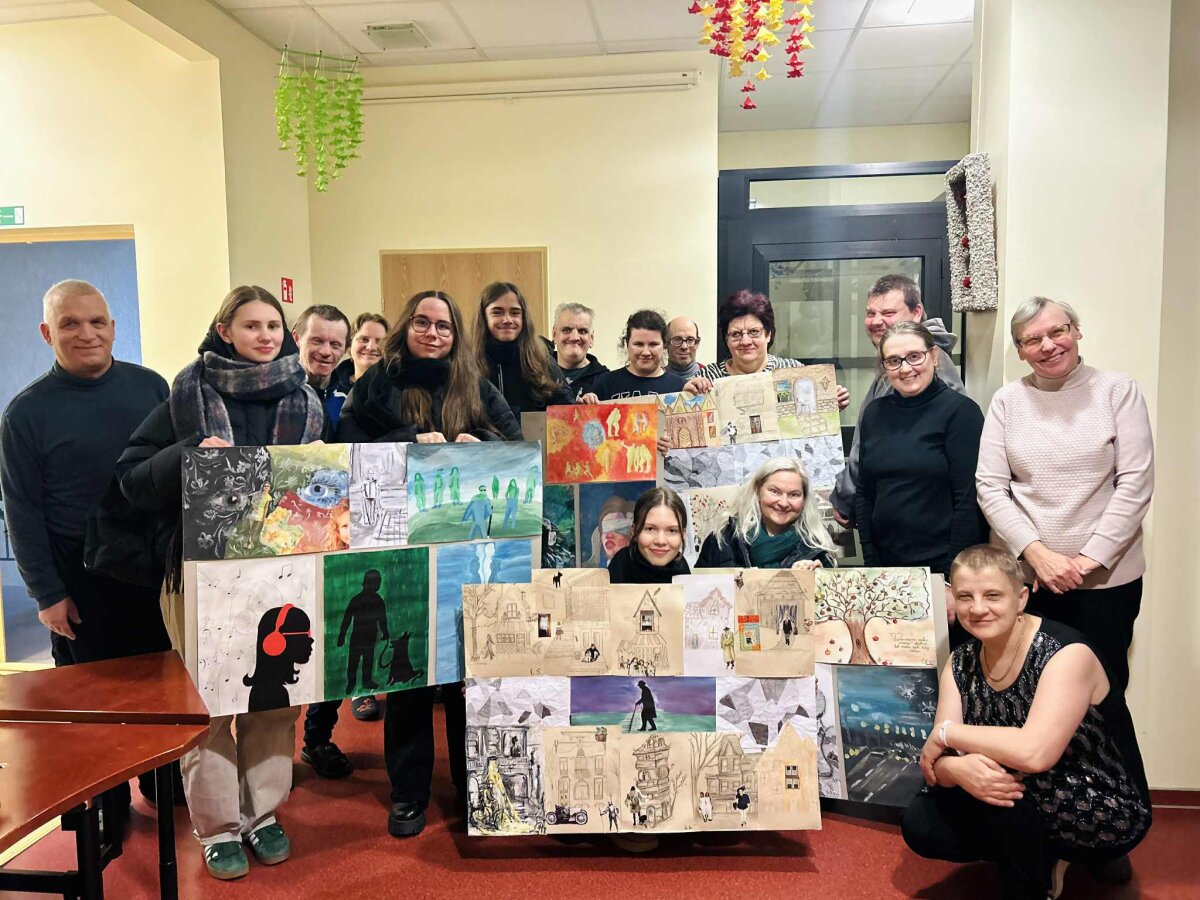 Tolerancijos ugdymo centro nariai padovanojo mokinių parengtą piešinių parodą, kurios iniciatorė gimnazijos dailės mokytoja Daiva Zalogienė. Meda, Simona ir Benediktas pristatė įtraukiančias kūrybines veiklas, kartu su centro lankytojais dalijosi geromis emocijomis. Susitikimą papuošė ir muzika – Meda ir Benediktas atliko kelis muzikinius kūrinius, o netrukus prie ritmo prisijungė visi: kas balsu, kas plojimu, kas šypsena ar judesiu. Šis susitikimas sustiprino supratimą, kad draugystė, dėmesys ir atvira širdis yra svarbiausios vertybės, kurios sujungia žmones nepaisant jų kasdienybės iššūkių.