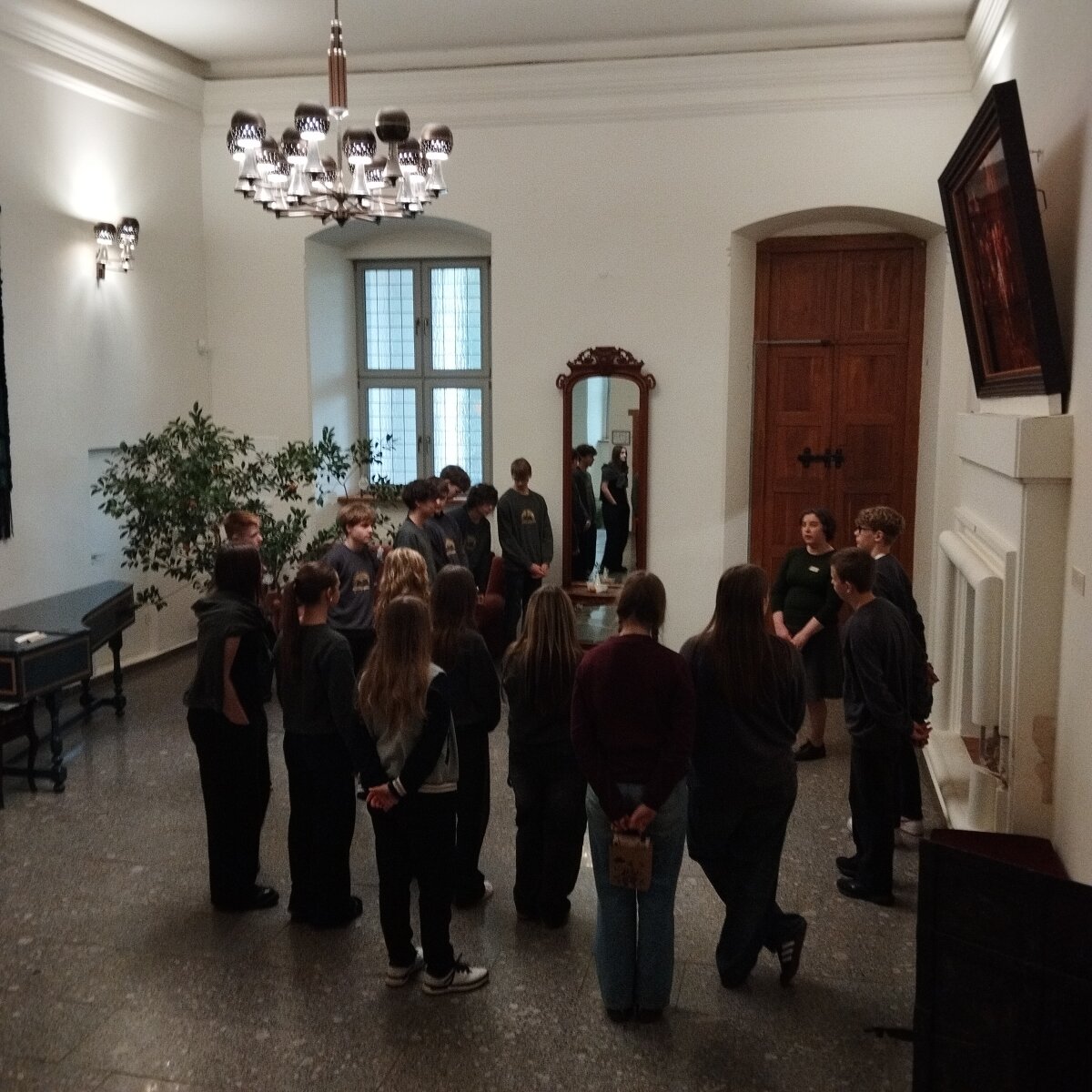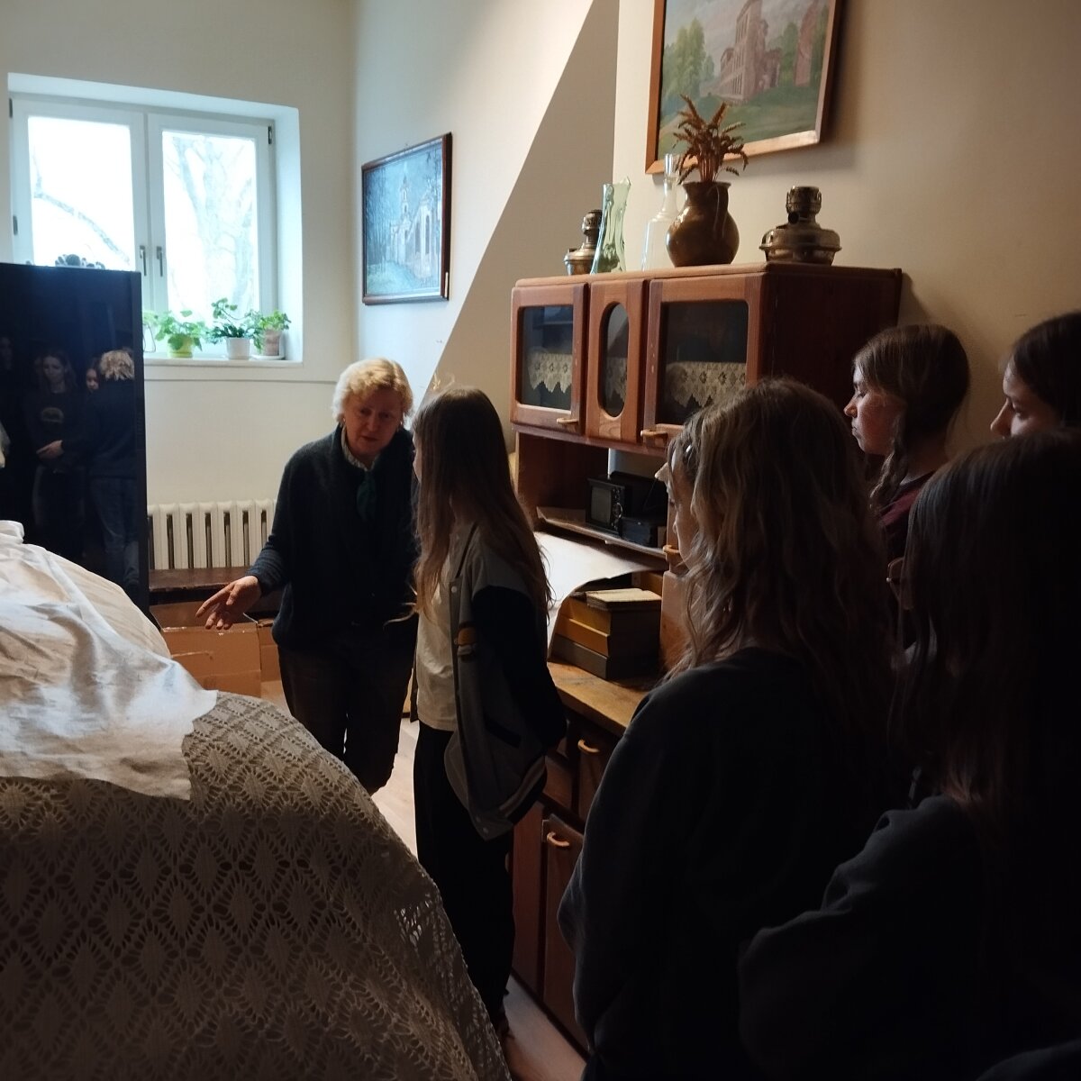 Juos šiltai pasitiko Karolio Flenderio mama, muziejaus darbuotoja Džiuljeta Flenderienė, kuri kartu su kolegomis supažindino mokinius su muziejaus veikla ir kasdieniais darbais.