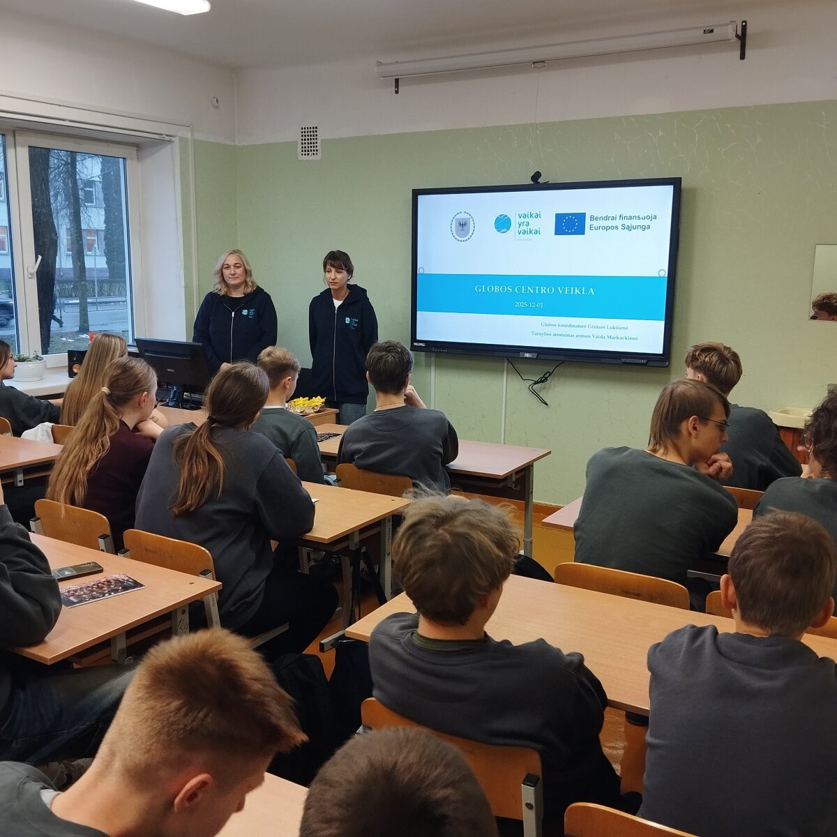 Gimnazistai sužinojo, kokią pagalbą ir paslaugas teikia Globos centras: nuo emocinės ir socialinės paramos globėjams bei įtėviams iki praktinių mokymų, konsultacijų ir pagalbos krizės atvejais. Koordinatorės pabrėžė, kad kiekvienas globojamas vaikas - tai unikali istorija, kuriai reikia supratimo, kantrybės ir saugios aplinkos, o globėjai - žmonės, kuriems ypač svarbus bendruomenės palaikymas.