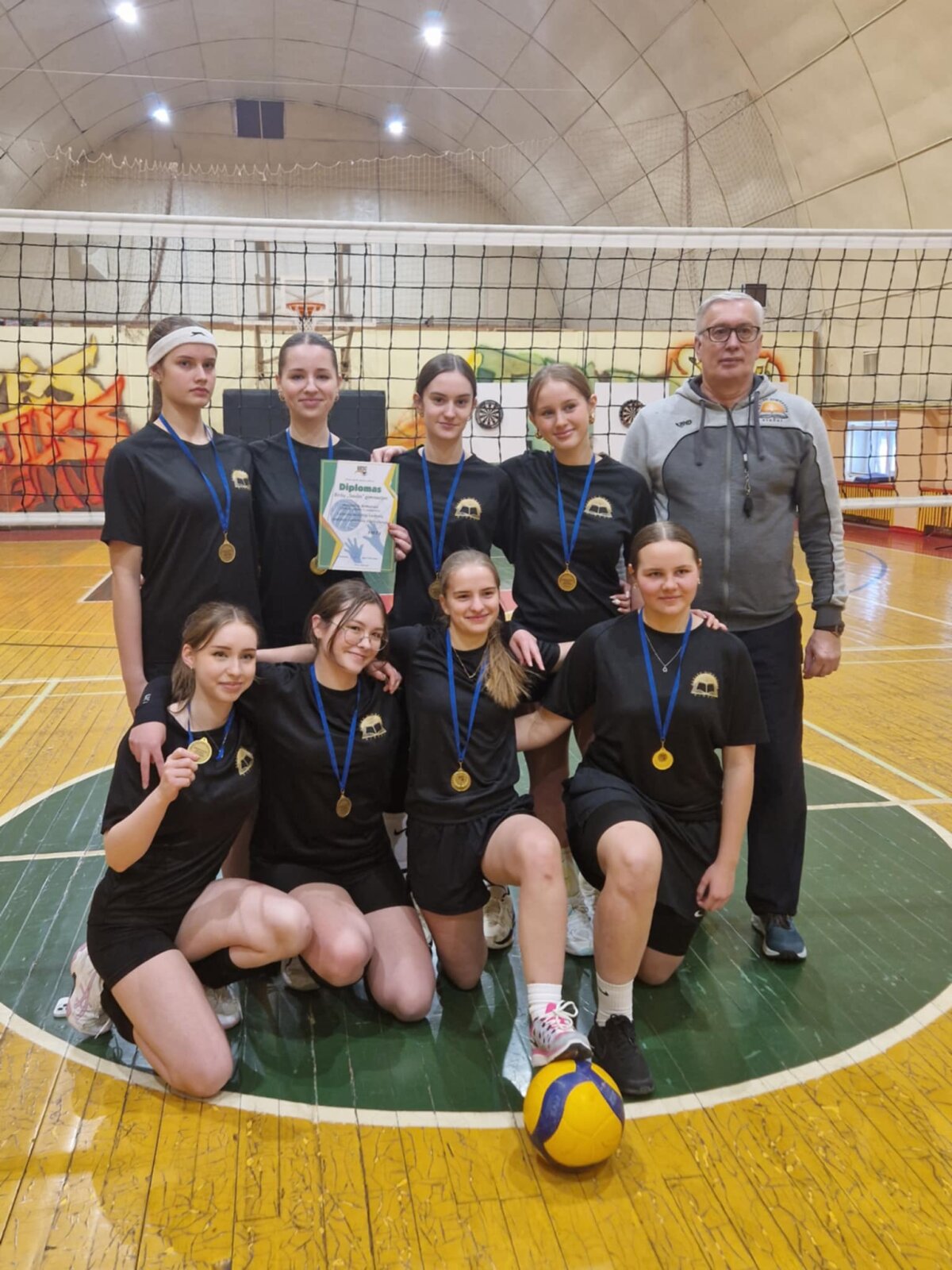 Biržų „Saulės“ gimnazijos sporto salėje žaidė merginos ir iškovojo pirmąją vietą bei pelnė teisę vykti į zonines varžybas.