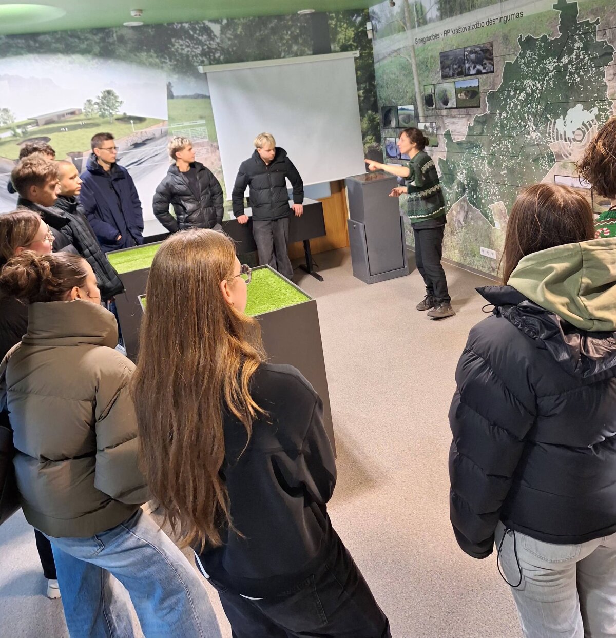 Gruodžio 12 d. pamokos vyko Biržų regioninio parko lankytojų centre, kur mokiniai gilino žinias apie mūsų krašto karstinius procesus, smegduobes ir kitus geologinius reiškinius. Interaktyvi ekspozicija „Prasmengančios žemės kraštas“ ir edukaciniai stendai pamokas pavertė įtraukiančia patirtimi.
