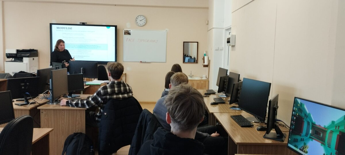 Čia mokinius pasitiko Centro karjeros specialistė Rasa Plikšnienė, kuri pristatė BTVMC siūlomas mokymo programas baigusiems vidurinę mokyklą, kalbėjo apie planą B ir C, neišlaikius abitūros egzaminų. Specialybės mokytoja Iveta Ruplėnienė išsamiai supažindino su moduline kompiuterinio projektavimo operatoriaus programa, pasakojo, ką konkrečiai per 1,5 metų išmoksta besimokantieji šios specialybės, kur galima ateityje panaudoti įgytus gebėjimus. Gimnazistai, merginos ir vaikinai (beje, prie jų netrukus prisijungė ir gimnazijos vairuotojas Arturas), puikiai susidorojo su praktine užduotimi AutoCad programa kompiuterių ekranuose nubraižyti 2 detales.