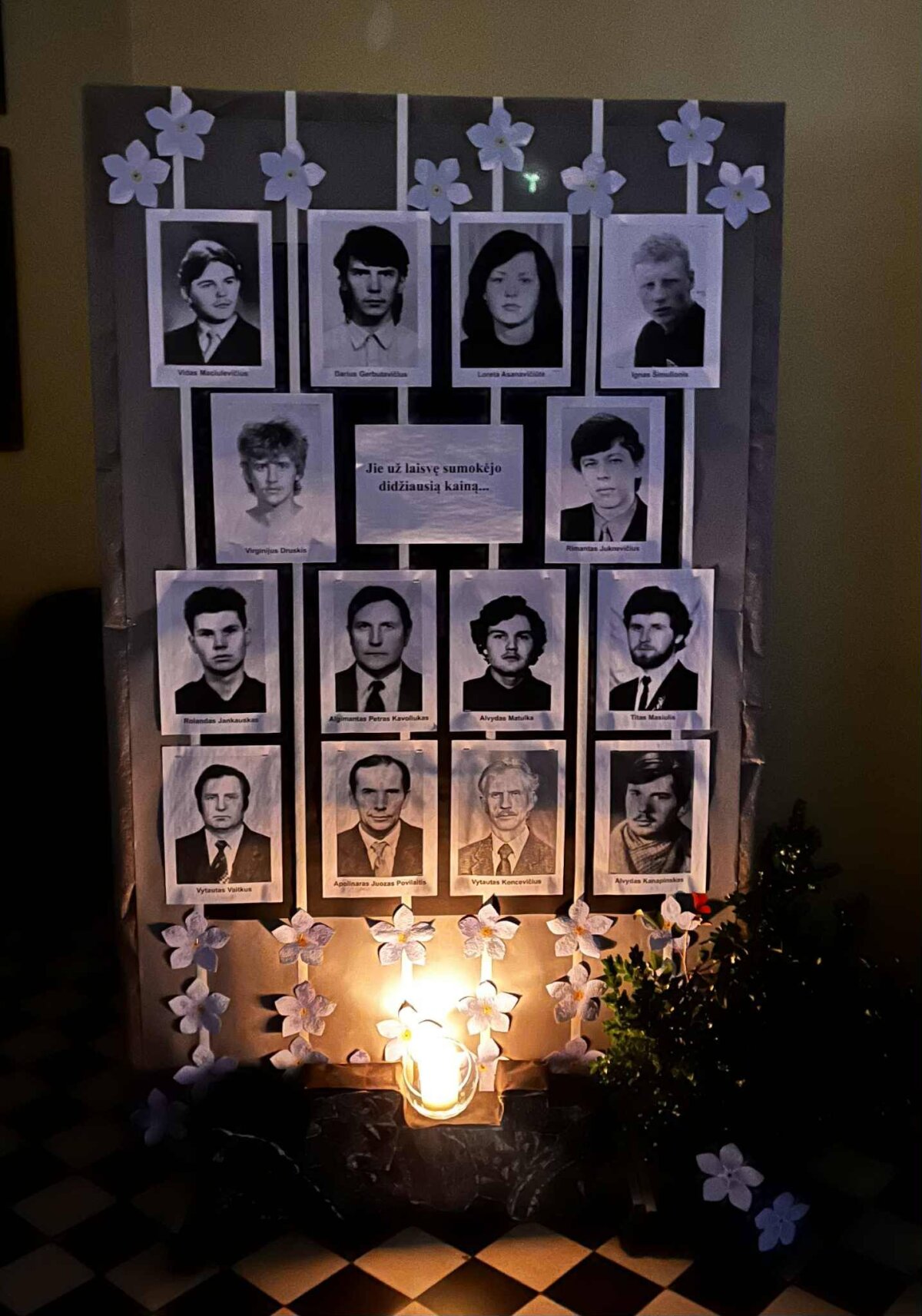 Ryte gimnazijos languose užgeso šviesos, o mažos liepsnelės priminė, kokia svarbi vienybė, atmintis ir pagarba laisvės gynėjams.