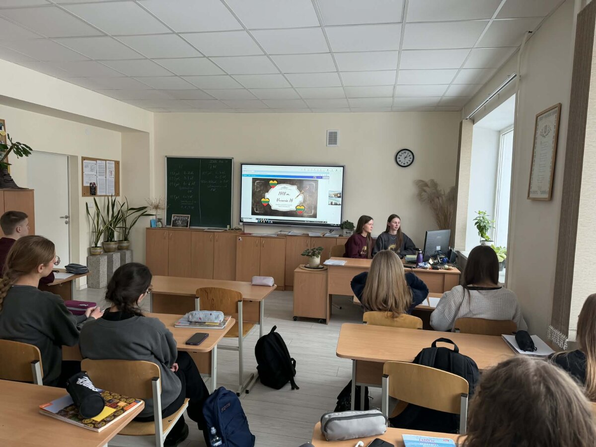 Pamokos metu Gabrielė Karaliūnaitė ir Emilija Misevičiūtė pristatė mūsų krašto signatarus, dalijosi įdomiais faktais, jų gyvenimo istorijų fragmentais ir įžvalgomis, padėjusiomis geriau suprasti signatarų asmenybes bei to meto iššūkius. Diskusijoje kartu aptarėme, ką šiandien reiškia laisvė ir nepriklausomybė, kodėl svarbu puoselėti istorinę atmintį. Pamoka skatino mokinių pilietiškumą, bendradarbiavimą ir prasmingą ryšį su Lietuvos istorija.