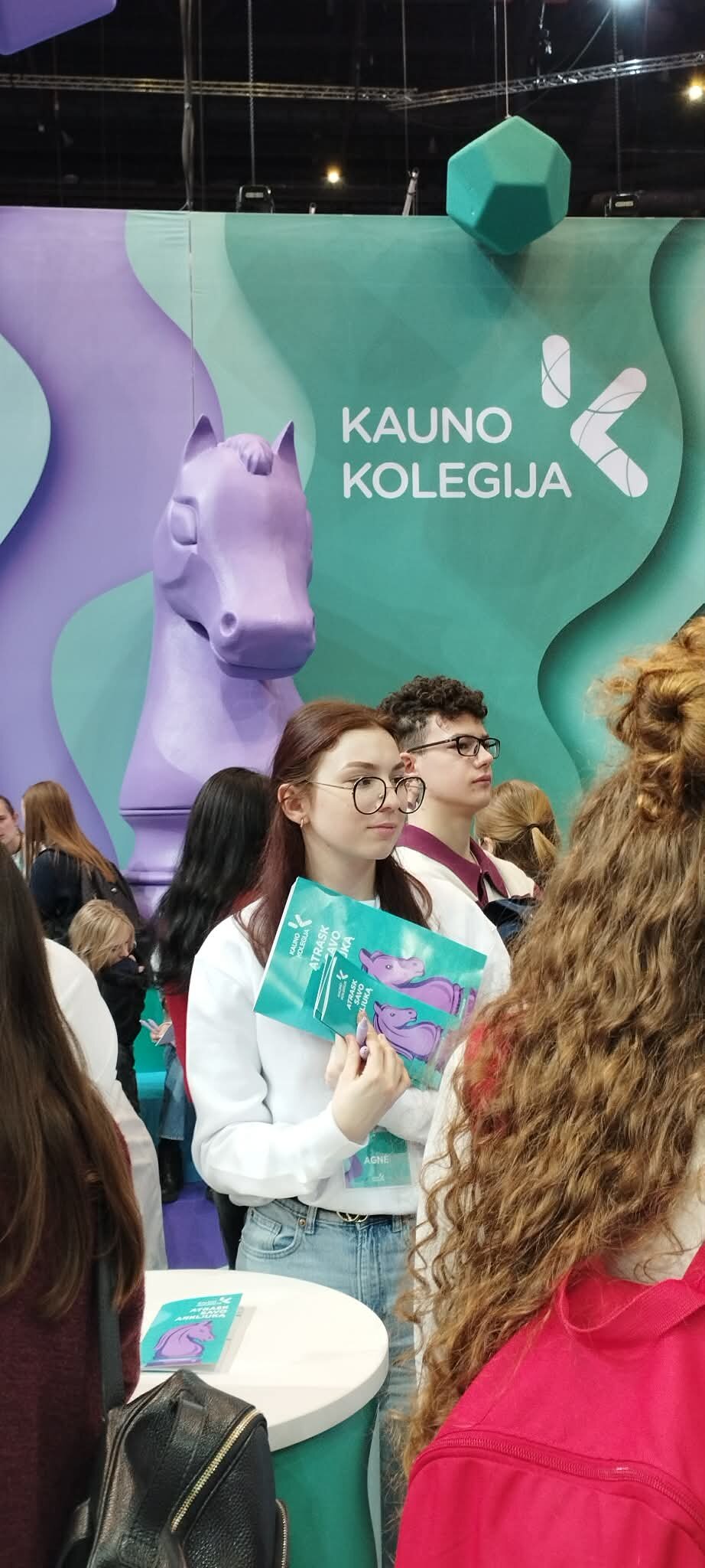 Vasario 24 dieną gimnazistai lankėsi Lietuvos aukštųjų mokyklų mugėje Kaune, „Žalgirio“ arenoje. Šioje kasmetinėje studijų ir karjeros mugėje savo mokymo įstaigas pristatė beveik visos Lietuvos aukštosios bei nemažai profesinių mokyklų bei mokymo centrų. Arenos amfiteatre apie studijų programas, stojimą į aukštąsias mokyklas, karjeros perspektyvas kalbėjo Švietimo, mokslo ir sporto ministerijos atstovai, aukštųjų mokyklų dėstytojai bei kiti įdomūs pranešėjai. O prie universitetų, kolegijų stendų būriavosi visi, norintys išgirsti pačių studentų patarimus įvairiais studijų pasirinkimo klausimais. Prie VDU stendo bendravome su buvusiu gimnazistu, dabar studentu pirmakursiu, Rolandu, kuris mielai atsakinėjo į mūsų klausimus, žadėjo apsilankyti gimnazijoje ir pasidalinti informacija apie studijas VDU su kitais moksleiviais. Kauno kolegijos šūkis šiemet – „Atrask savo arkliuką!“ – labai tiko visiems studijų ir karjeros mugės lankytojams. Mūsų gimnazistai džiaugėsi galimybe gauti tiek daug naudingos, pačios aktualiausios informacijos būsimos karjeros klausimais.